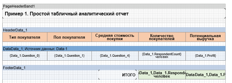 К примеру, если в источнике данных есть 100 строк, то блок Данные будет выведен на печать ровно 100 раз. Если при выводе на печать заканчивается место на странице, то будет сформирована новая страница и печать будет продолжена далее.