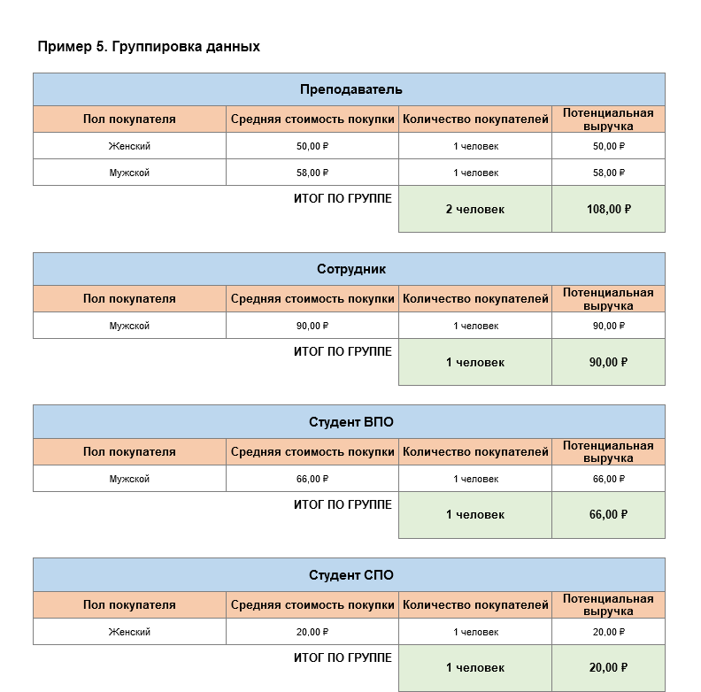 Блок Заголовок Группы выводится в начале каждой группы, блок Итог группы выводится в конце каждой группы.