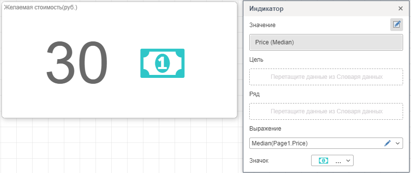 Для отображения Индикатора, необходимо добавить данные в поле Значение, которое будет выведено при помощи графического элемента.