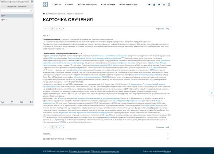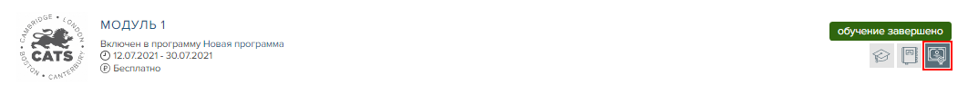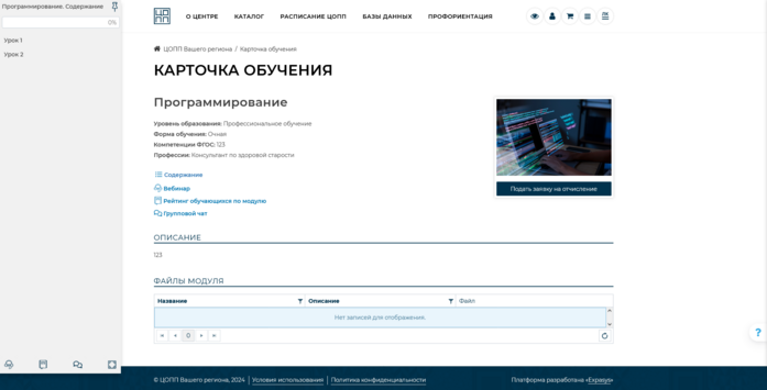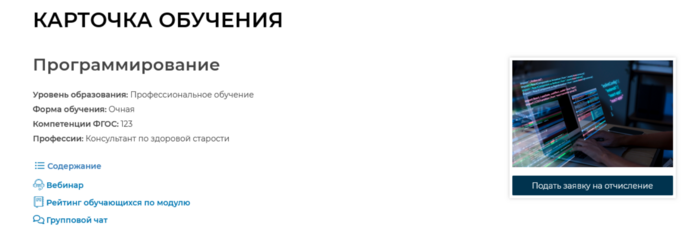 . Откроется новая вкладка с карточкой обучения, на которой представлена краткая информация о модуле, а также размещен обучающий контент.