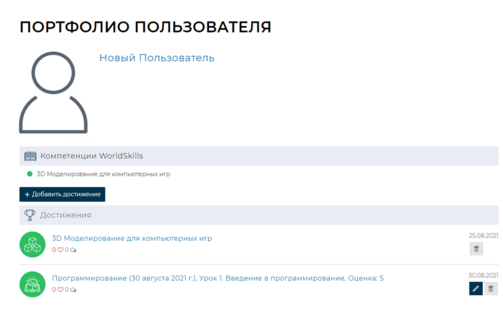 Электронное портфолио пользователя