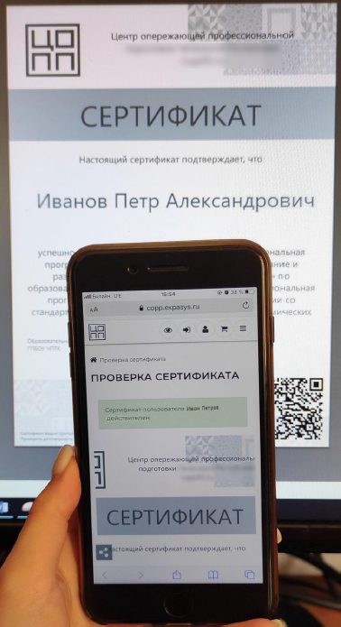 Подтвердить подлинность сертификата можно при помощи считывания QR-кода.
