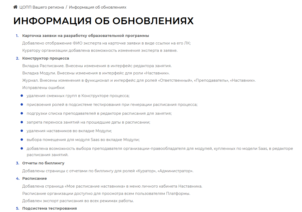 На данной странице можно ознакомиться со списком всех обновлений и исправлений, добавленных на Платформу с последним обновлением.