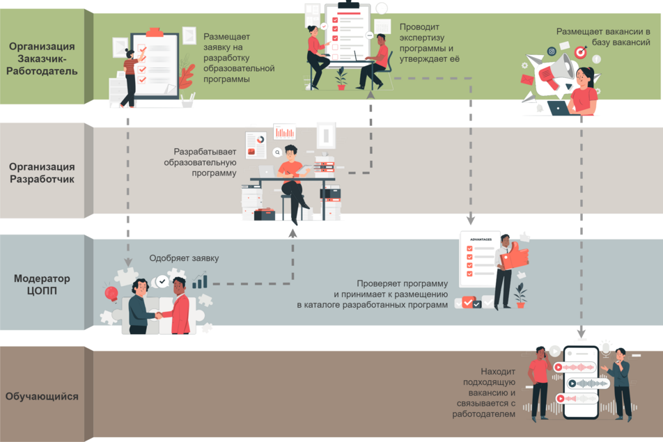• возможность взаимодействовать с организациями-разработчиками образовательных программ по вашему заказу, выбирать актуальные для вас предложения;