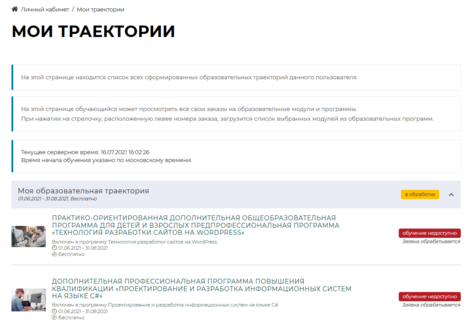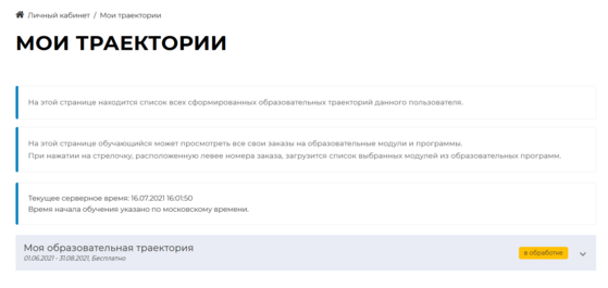 В подробностях образовательной траектории представлены заказанные модули со следующей информацией: