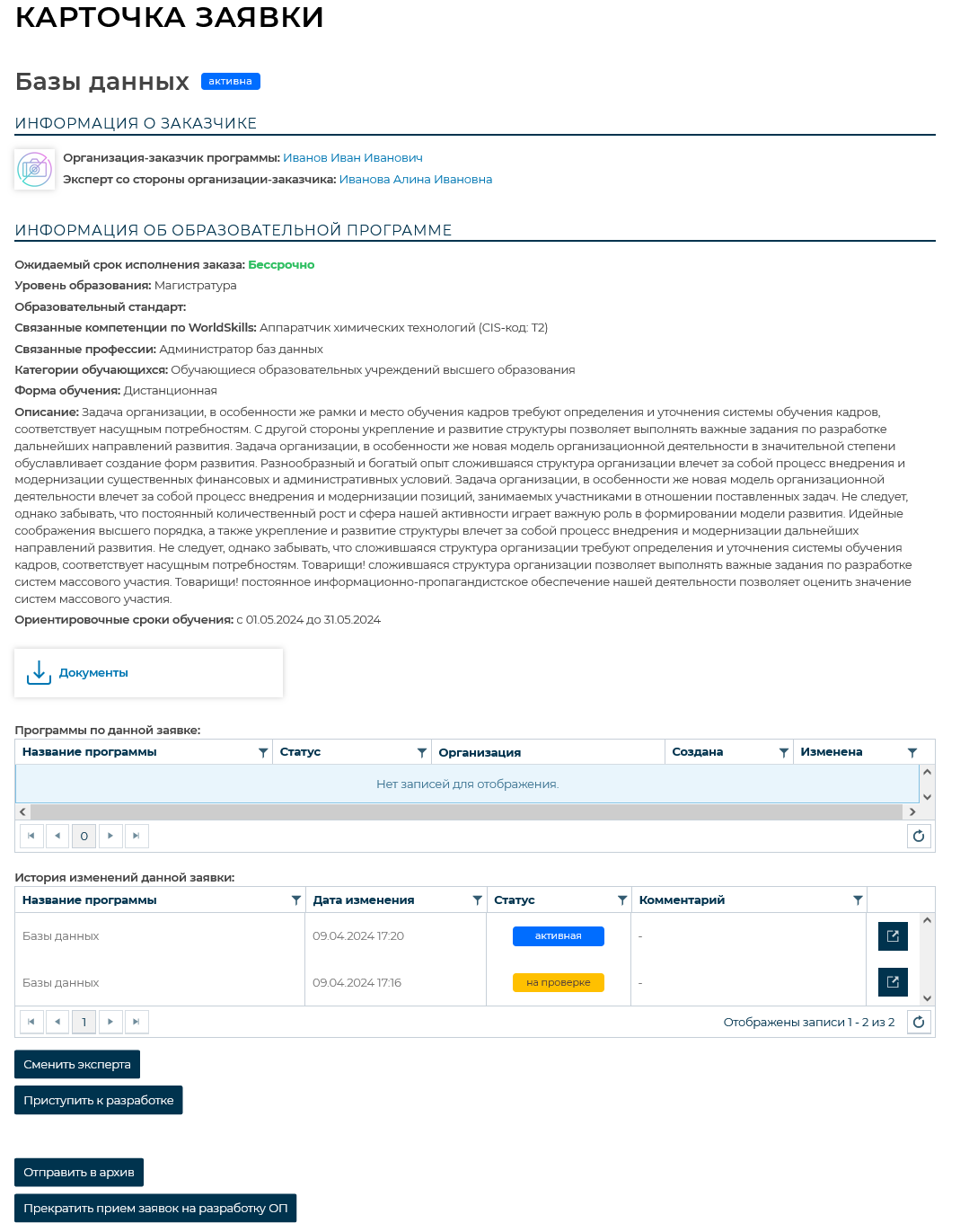 Каталог активных заявок на разработку образовательных программ