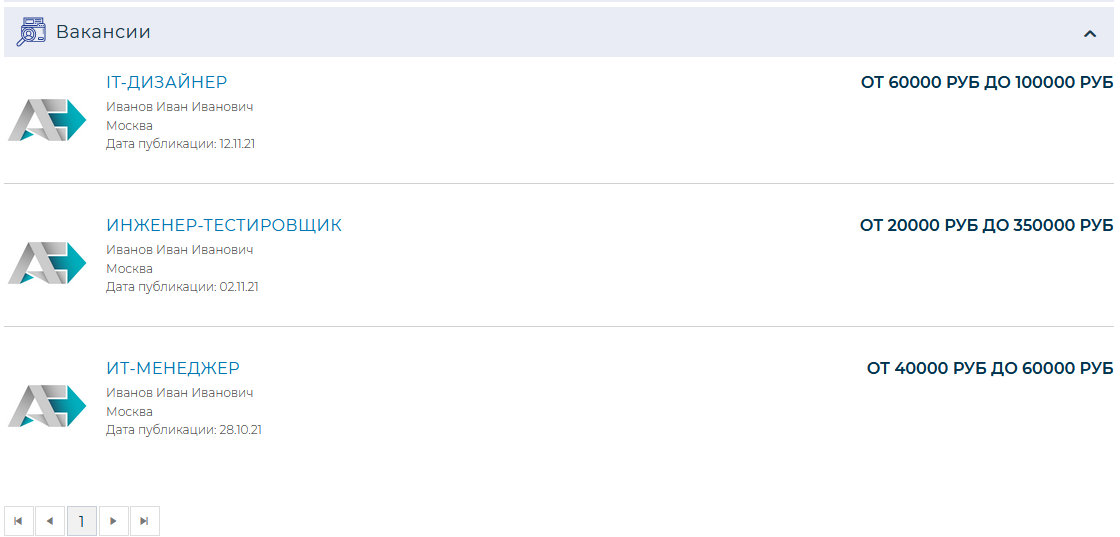 Куратор может добавить вакансию от своей организации, и она будет размещена в общем списке вакансий Платформы.