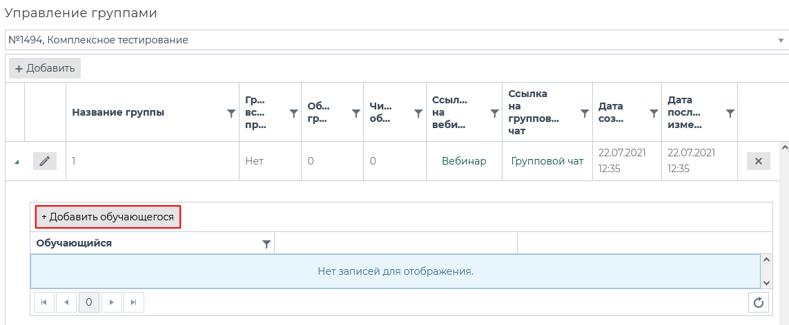 После добавления студентов в группу нажать на крестик