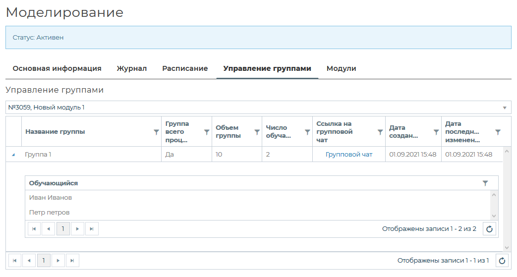 Для преподавателя доступен только просмотр списка групп и обучающихся по модулям образовательного процесса.