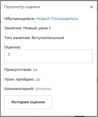 Для просмотра дополнительной информации по оценке необходимо нажать кнопку оценки