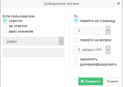 К большей части вопросов возможно применение логических переходов, т.е. добавление логики перехода в разные части анкеты, исходя из ответов респондентов на предыдущий вопрос.