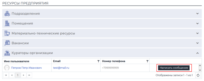 По ссылке в пункте «Правообладатель», Администратор переходит на публичную страницу организации-правообладателя и может написать сообщение Куратору данной организации.