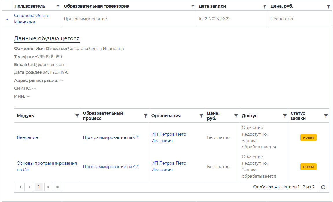 Все заявки на программы и модули