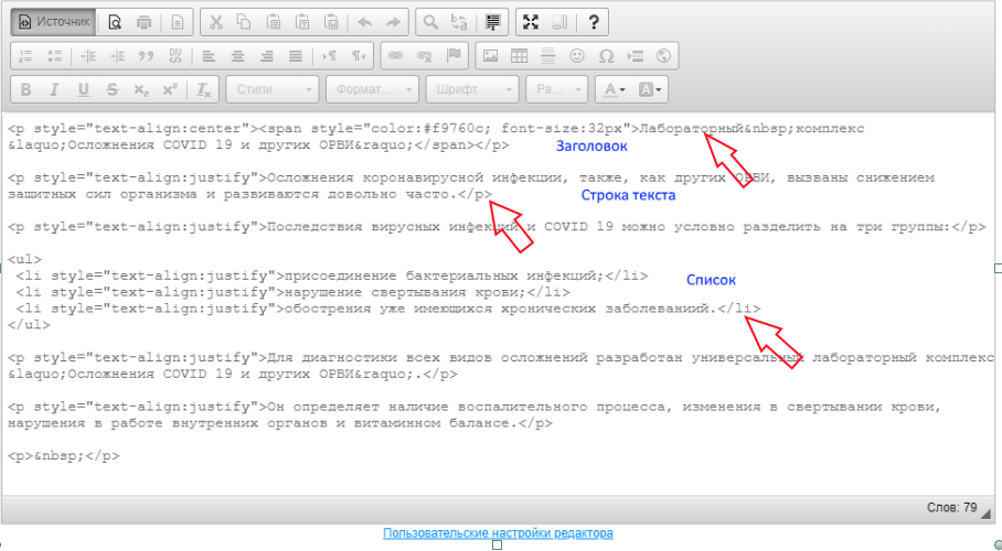 Редактирование текста в режиме HTML-редактора