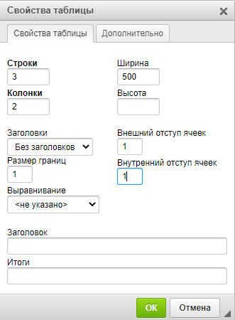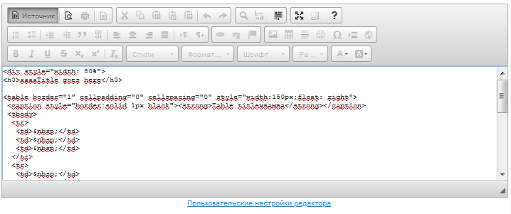 Если необходимо внести другие изменения в таблицу, необходимо перейти в Источник и добавить нужные атрибуты тегов таблицы и значения этих атрибутов HTML-кодом.