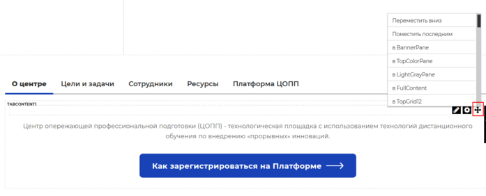 Контекстное меню для перемещения модуля на странице