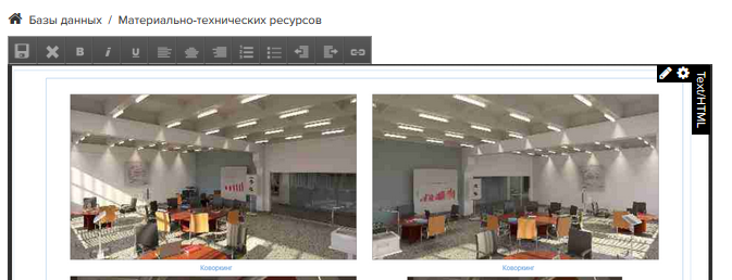 HTML-модуль представляет собой текстовый редактор, в котором может размещаться форматированный текст, ссылки, медиа-файлы.