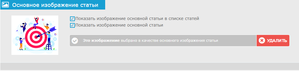 Появится поле «Основное изображение статьи». Ничего изменять не нужно.