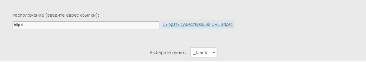 В появившееся поле ввода скопируйте ссылку на прохождение теста и чуть ниже поля ввода выберите пункт «_blank».