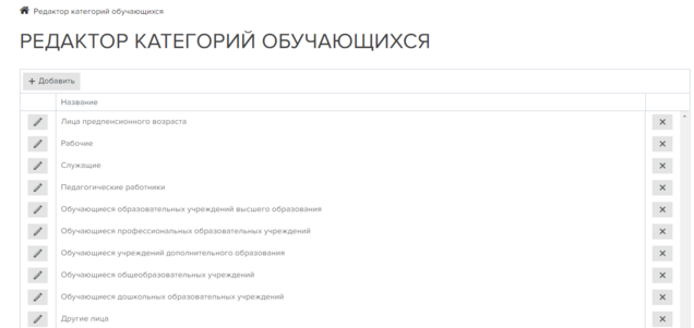 Редактор категорий обучающихся.