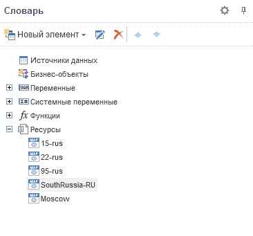 Элемент Региональная карта предоставляет возможность отобразить какое-либо значение с привязкой к географическому объекту.