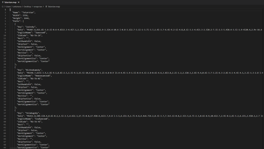 Файл карты - это файл типа *.map, с json разметкой данных географических объектов.