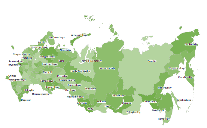 Картограмма - предоставляет возможность отобразить какое-либо значение с привязкой к географическому объекту (область, регион, страна, часть света и т.д.).