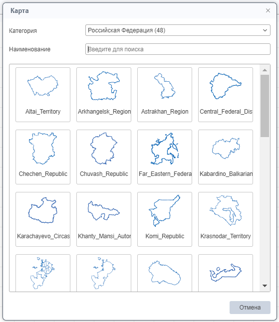 Карта представляет собою компонент отчета, при помощи которого можно отобразить данные с привязкой к географическому положению.
