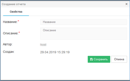и заполнить пункты в появившимся диалоговом окне: {Название} и {Описание}. Пункты {Автор} и {Создан}, заполняются системой автоматически.