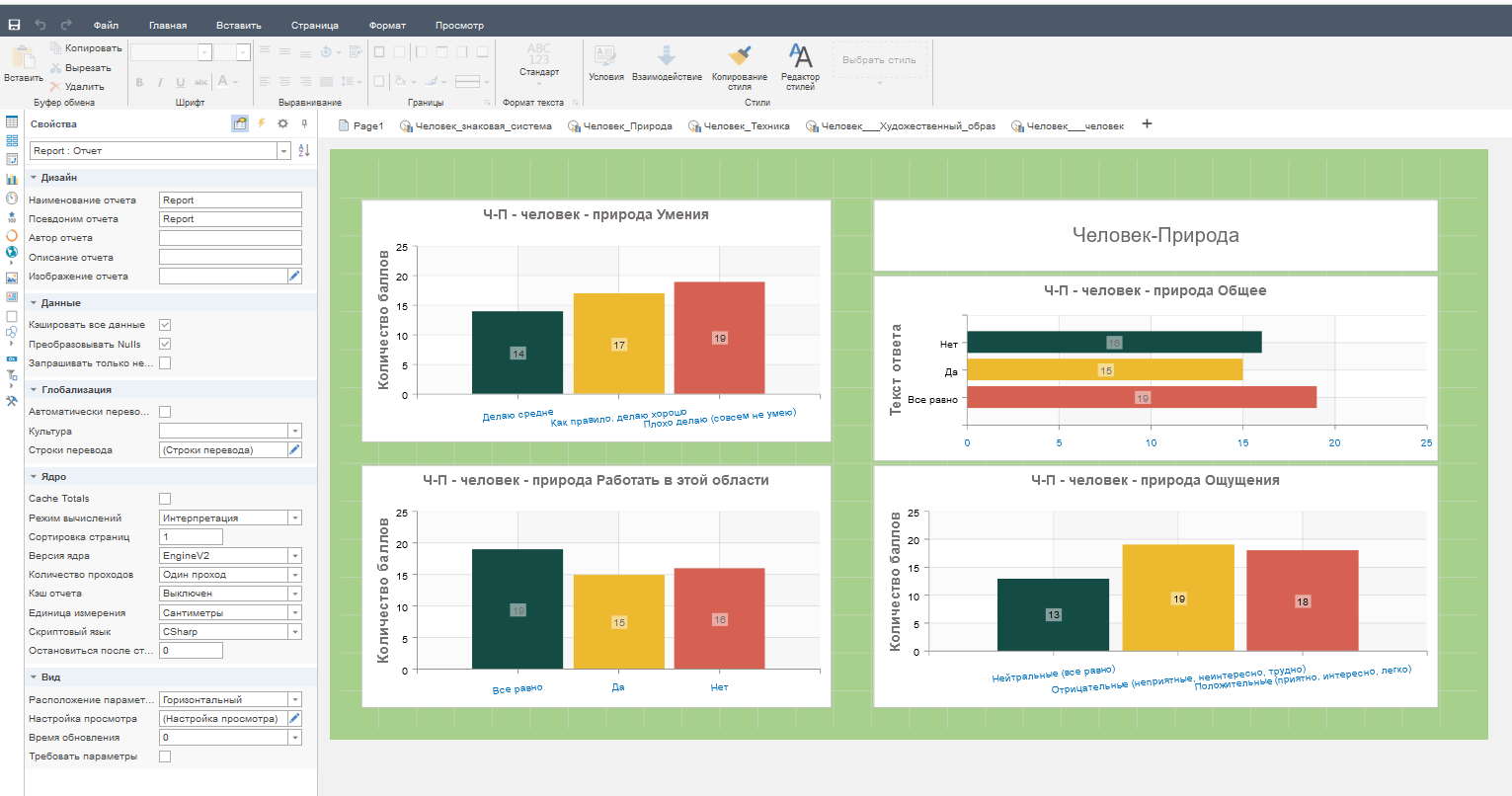 Вкладка Аналитика. Настройки аналитических отчетов, свойства отчетов