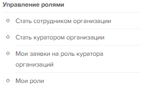 Меню верифицированного пользователя. Управление ролями