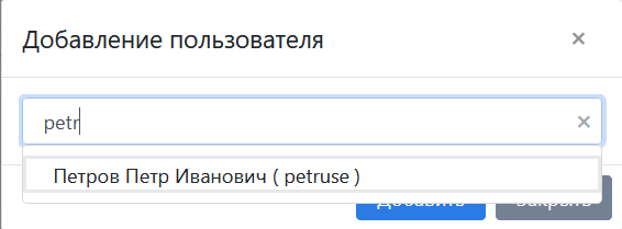 В появившемся окне в поле ввода ввести имя пользователя и выбрать его из выпадающего списка.