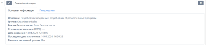 Для редактирования выбранной роли, необходимо нажать