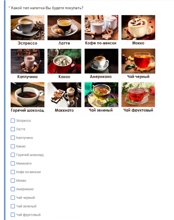 Отображение конструктора анкеты. Тип вопроса – Вопрос множественного выбора