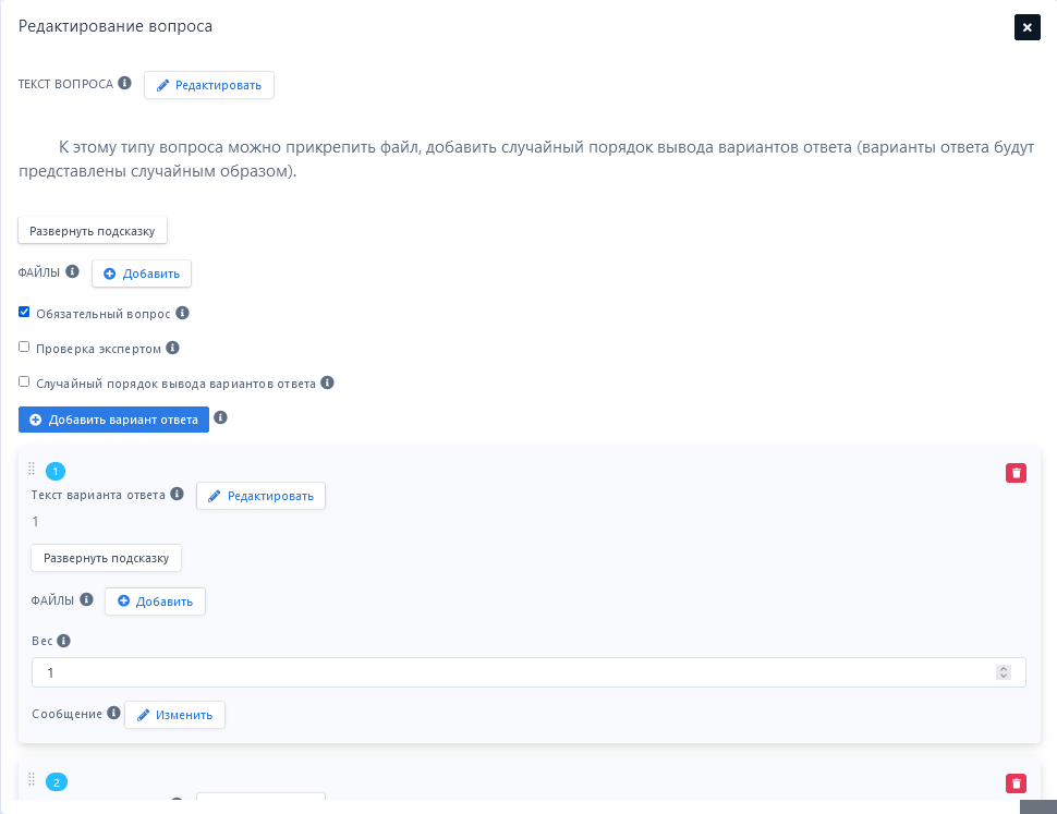 Сообщение – текст сообщения, которое будет отображаться, если респондент выбрал этот вариант ответа.