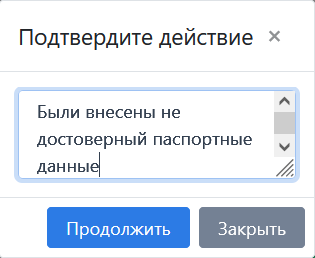 . После нажатия на кнопку появится окно подтверждения действий. В случае «Отклонения заявки» необходимо указать причину отказа.